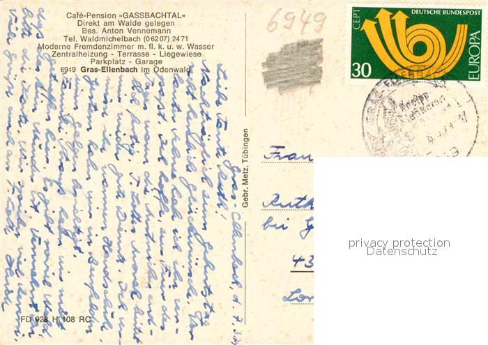72839458 alte Postkarte Gras-Ellenbach Cafe Pension Gassbachtal Winterpanorama postalisch gelaufen Erhaltung siehe scans [FriedD77] KatCode: 11110006431009
