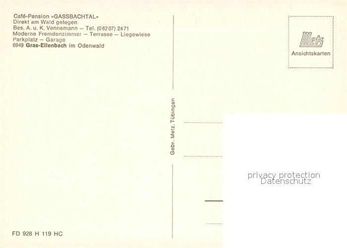 73683795 Gras-Ellenbach Cafe Pension Gassbachtal postalisch nicht gelaufen Erhaltung siehe scans [LiesaD40] KatCode: 11110006431009
