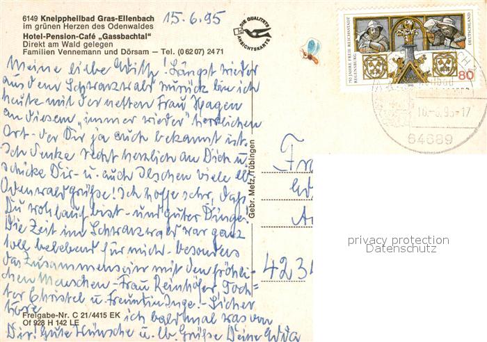 73125282 alte Postkarte Gras-Ellenbach Fliegeraufnahme Hotel Gassbachtal postalisch gelaufen Erhaltung siehe scans [NatalD47] KatCode: 11110006431009