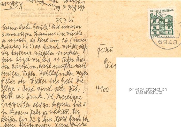 73779398 alte Postkarte Gras-Ellenbach Fliegeraufnahme mit Heinrich Gluecklich Haus postalisch gelaufen Erhaltung siehe scans [WerneD78] KatCode: 11110006431009