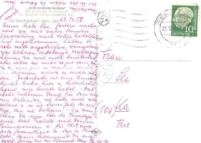 73863901 alte Postkarte Gras-Ellenbach Grasellenbach Ansicht mit Heinrich-Gluecklich-Haus postalisch gelaufen Erhaltung siehe scans [FriedD77] KatCode: 11110006431009