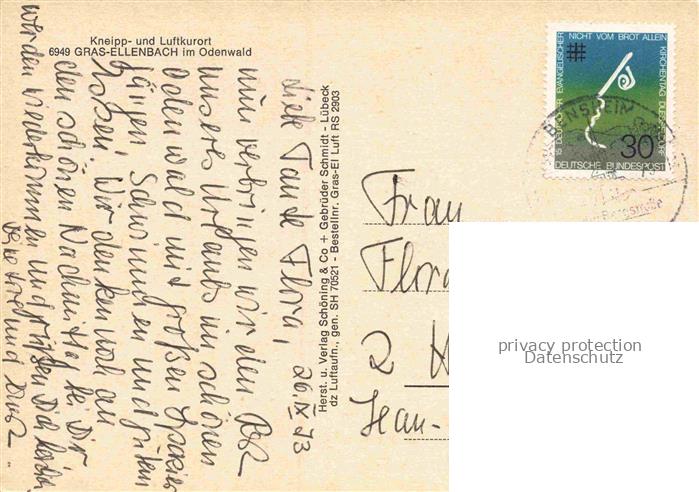 74157667 alte Postkarte Gras-Ellenbach Grasellenbach Bergstrasse Hessen Kneipp-Kurort Hotel Odenwald Tal Wiesen Wald postalisch gelaufen Fliegeraufnahme Erhaltung siehe scans [Karloger] KatCode: 11110006431009
