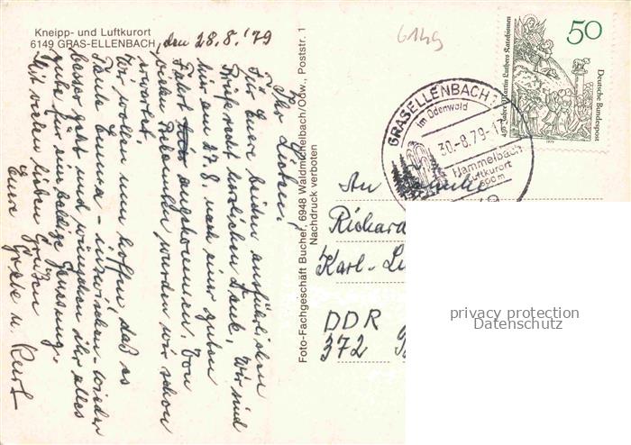 74154999 alte Postkarte Gras-Ellenbach Grasellenbach Bergstrasse Hessen Teilansicht Kneipp- und Luftkurort Hotel postalisch gelaufen Erhaltung siehe scans [FriedD77] KatCode: 11110006431009