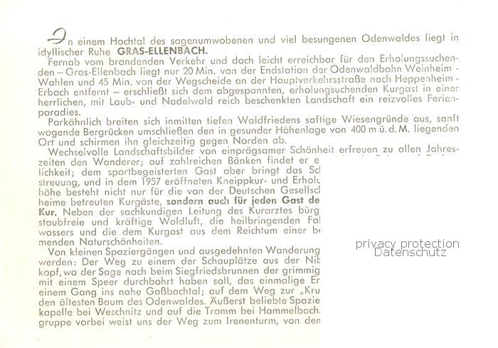 73860256 Gras-Ellenbach Grasellenbach Cafe Pension Grasbachtal postalisch nicht gelaufen Werbekarte (keine Postkarte) Erhaltung siehe scans [WerneD78] KatCode: 11110006431009