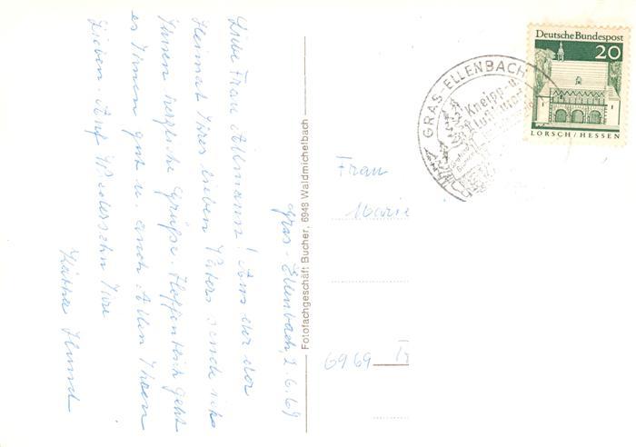 73887477 alte Postkarte Gras-Ellenbach Grasellenbach Panorama Kneipp- und Luftkurort postalisch gelaufen Erhaltung siehe scans [FriedD77] KatCode: 11110006431009