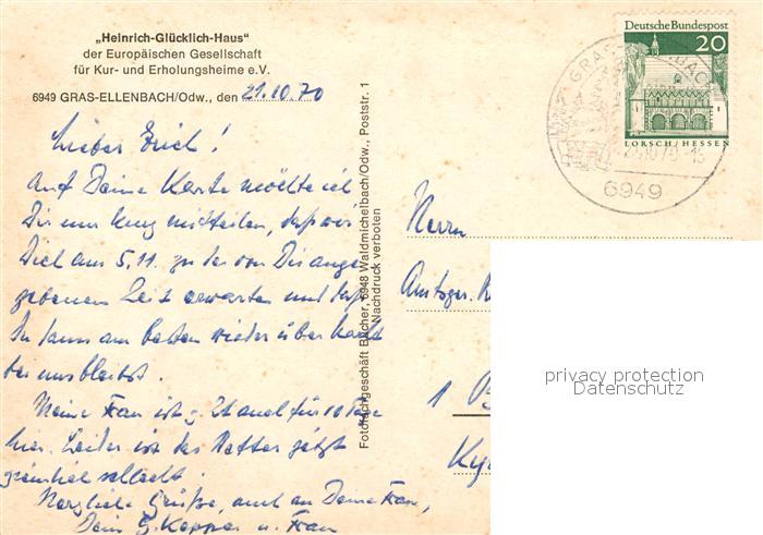 73512322 alte Postkarte Gras-Ellenbach Heinrich Gluecklich Haus postalisch gelaufen Erhaltung siehe scans [WerneD78] KatCode: 11110006431009