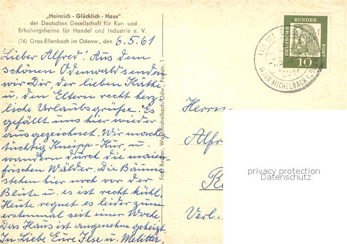73121775 alte Postkarte Gras-Ellenbach Heinrich Gluecklich Haus postalisch gelaufen Erhaltung siehe scans [KathaD81] KatCode: 11110006431009