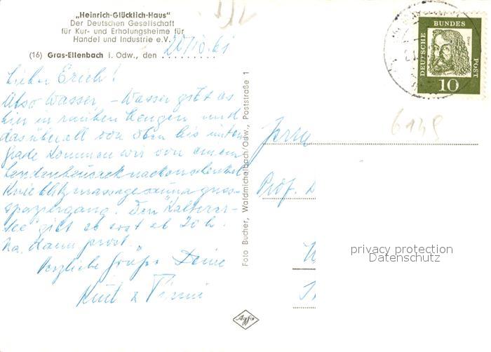 73096050 alte Postkarte Gras-Ellenbach Heinrich Gluecklich Haus postalisch gelaufen Erhaltung siehe scans [KathaD81] KatCode: 11110006431009
