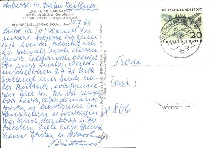 72404750 alte Postkarte Gras-Ellenbach Heinrich Gluecklich Haus postalisch gelaufen Erhaltung siehe scans KatCode: 11110006431009