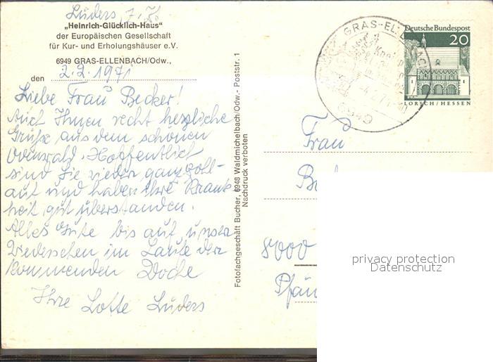 71838920 alte Postkarte Gras-Ellenbach Heinrich Gluecklich Haus Europaeische Gesellschaft fuer Kur und Erholungshaeuser e.V. postalisch gelaufen Erhaltung siehe scans KatCode: 11110006431009
