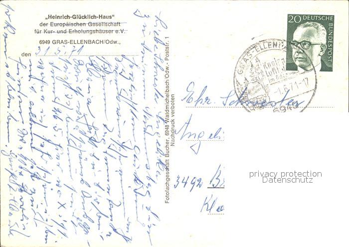72263127 alte Postkarte Gras-Ellenbach Heinrich Gluecklich Haus Europaeische Gesellschaft fuer Kur und Erholungshaeuser eV postalisch gelaufen Erhaltung siehe scans KatCode: 11110006431009