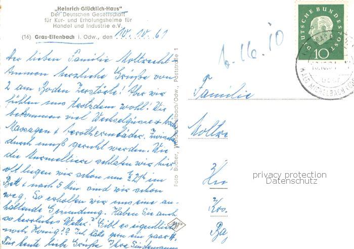 73783987 alte Postkarte Gras-Ellenbach Heinrich Gluecklich Haus postalisch gelaufen Erhaltung siehe scans [WerneD78] KatCode: 11110006431009