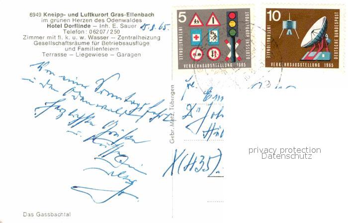 72639241 alte Postkarte Gras-Ellenbach Hotel Dorflinde postalisch gelaufen Erhaltung siehe scans [WerneD78] KatCode: 11110006431009