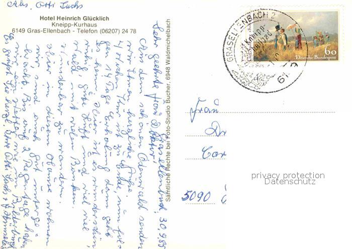 72903474 alte Postkarte Gras-Ellenbach Hotel Heinrich Gluecklich Kneippkurhaus postalisch gelaufen Erhaltung siehe scans [FriedD77] KatCode: 11110006431009