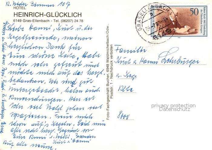 72951810 alte Postkarte Gras-Ellenbach Hotel Heinrich-Gluecklich postalisch gelaufen Erhaltung siehe scans [PaolaD17] KatCode: 11110006431009