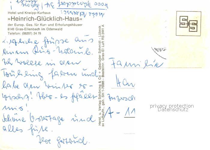 72681245 alte Postkarte Gras-Ellenbach Hotel Kneipp Kurhaus Heinrich Gluecklich Haus Fliegeraufnahme postalisch gelaufen Erhaltung siehe scans [WerneD78] KatCode: 11110006431009