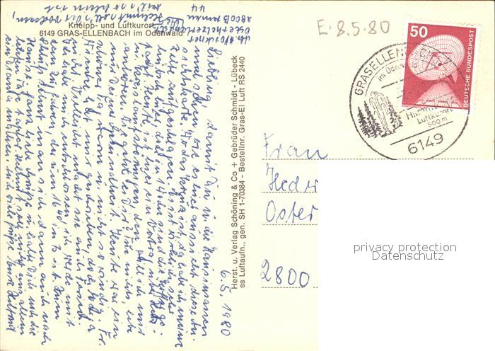 72557338 alte Postkarte Gras-Ellenbach Kneipp Luftkurort postalisch gelaufen Erhaltung siehe scans [KathaD79] KatCode: 11110006431009