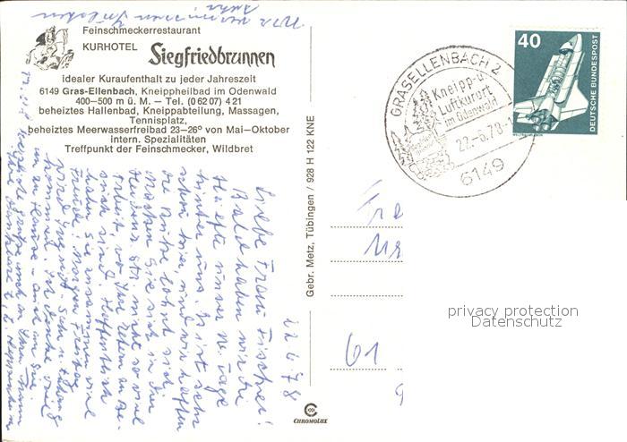 alte Postkarte Gras-Ellenbach Kurhotel Siegfriedbrunnen postalisch gelaufen Erhaltung siehe scans
