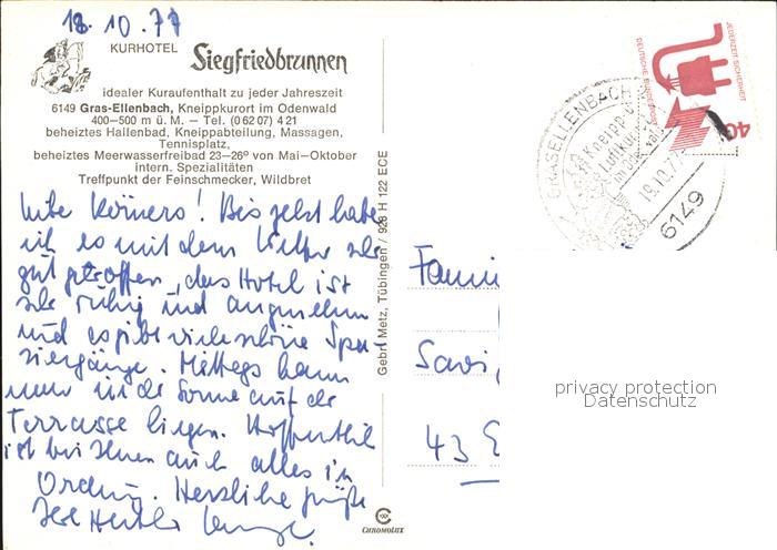 72548692 alte Postkarte Gras-Ellenbach Kurhotel Siegfriedbrunnen postalisch gelaufen Erhaltung siehe scans [LiesaD40 kv021box] KatCode: 11110006431009