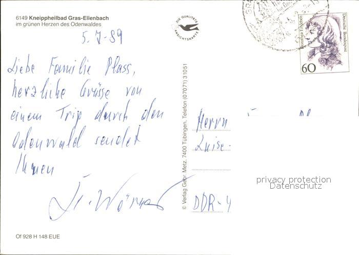 72402042 alte Postkarte Gras-Ellenbach Schwanenteich Park Brunnen postalisch gelaufen Erhaltung siehe scans KatCode: 11110006431009