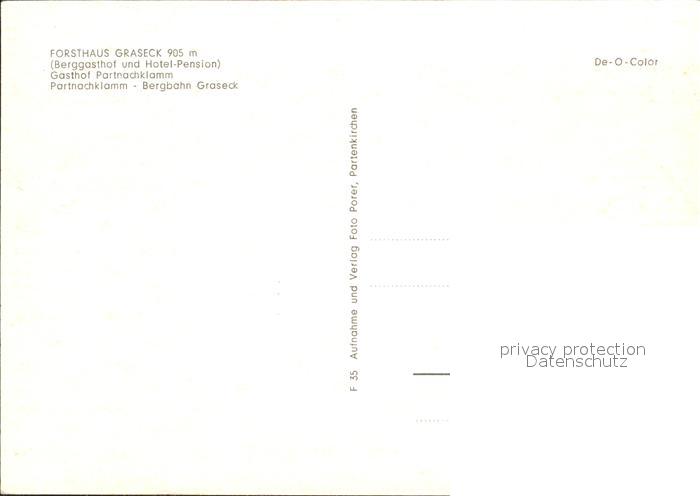 72282267 Graseck Forsthaus Berggasthof Partnachklamm Wasserfall Bergbahn Alpenblick postalisch nicht gelaufen Erhaltung siehe scans KatCode: 11110009180117