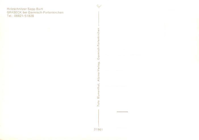 73881434 Graseck Garmisch-Partenkirchen Holzschnitzer Sepp Bartl postalisch nicht gelaufen Erhaltung siehe scans [WerneD78] KatCode: 11110009180117