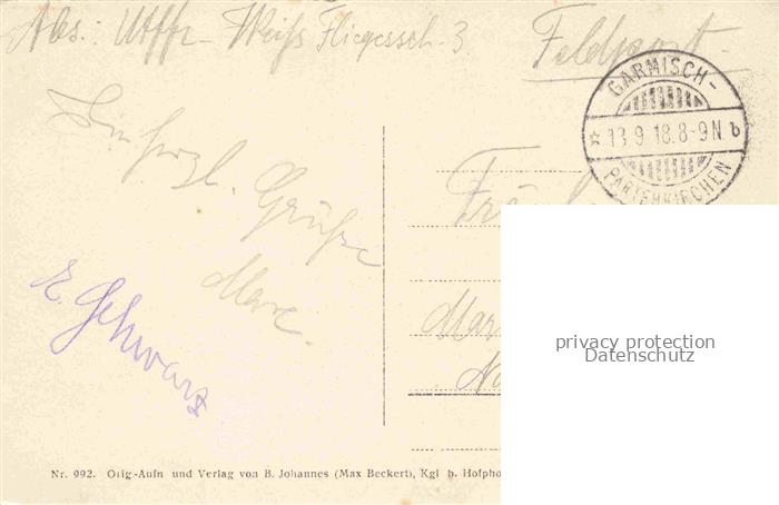 74036229 alte Postkarte Graseck Garmisch-Partenkirchen mit Kapelle und Wetterstein postalisch gelaufen Feldpost – Stempel Erhaltung siehe scans [WerneD78] KatCode: 11110009180117