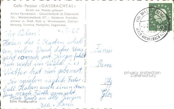 72096806 alte Postkarte Grasellenbach Cafe Pension Gassbachtal postalisch gelaufen Erhaltung siehe scans KatCode: 11110006431009