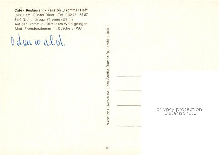 73844872 Grasellenbach Cafe Restaurant Pension Trommer Hof postalisch nicht gelaufen Erhaltung siehe scans [FriedD77] KatCode: 11110006431009
