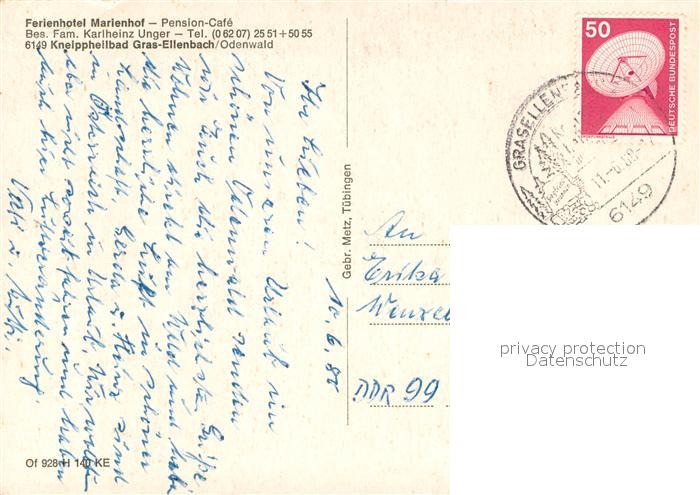 73646027 alte Postkarte Grasellenbach Ferienhotel Marienhof Pension Cafe Hallenbad Terrasse postalisch gelaufen Erhaltung siehe scans [FriedD77] KatCode: 11110006431009