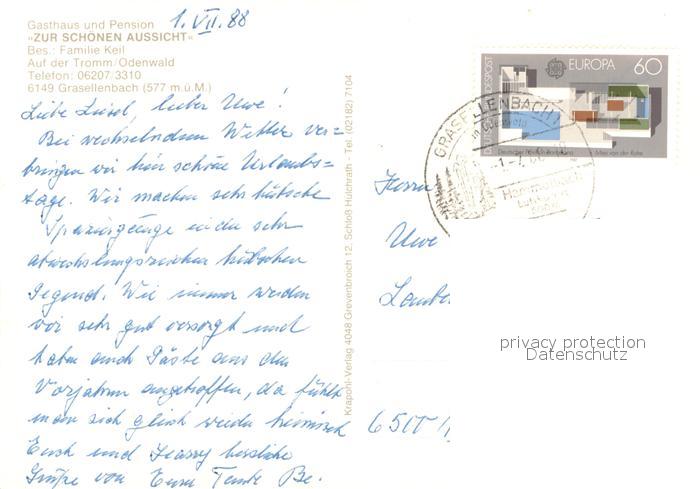 73636890 alte Postkarte Grasellenbach Gasthaus Pension Zur schoenen Aussicht auf der Troemm Odenwald postalisch gelaufen Erhaltung siehe scans [FriedD77] KatCode: 11110006431009