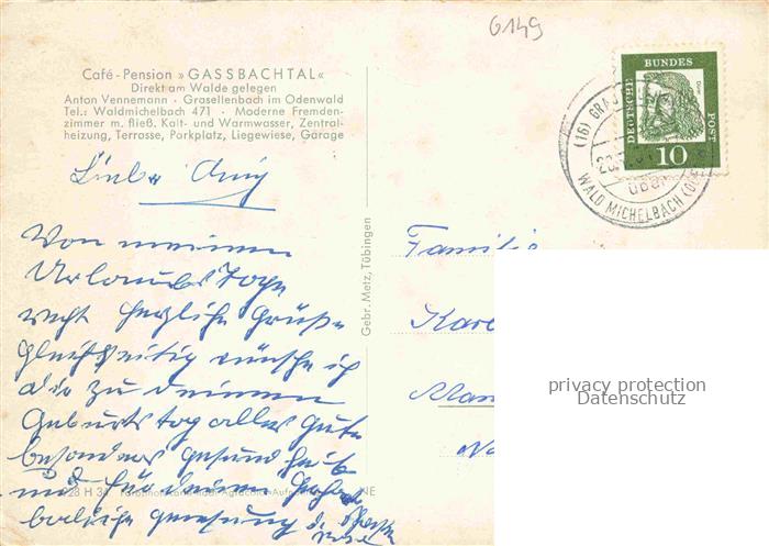 74060144 alte Postkarte Grasellenbach Gras-Ellenbach Cafe Pension Gassbachtal postalisch gelaufen Erhaltung siehe scans [WerneD78] KatCode: 11110006431009