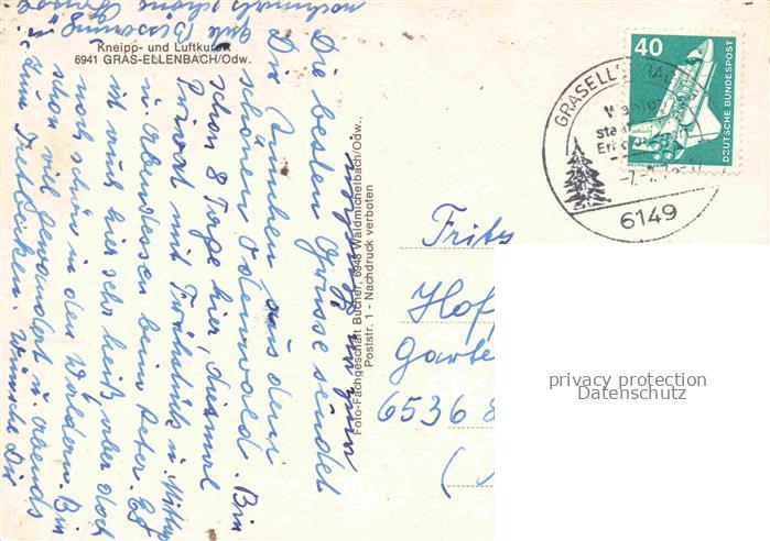 74048086 alte Postkarte Grasellenbach Gras-Ellenbach Panorama Kneipp- und Luftkurort postalisch gelaufen Erhaltung siehe scans [FriedD77] KatCode: 11110006431009