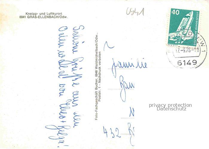 74048200 alte Postkarte Grasellenbach Gras-Ellenbach Panorama Kneipp- und Luftkurort postalisch gelaufen Erhaltung siehe scans [FriedD77] KatCode: 11110006431009