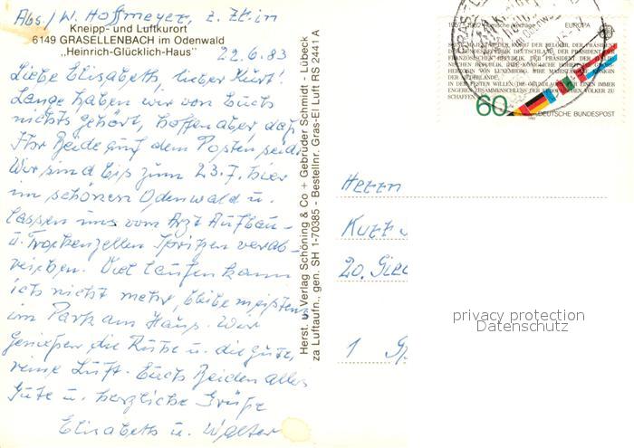 73209539 alte Postkarte Grasellenbach Heinrich Gluecklich Haus Fliegeraufnahme postalisch gelaufen Erhaltung siehe scans [WerneD78] KatCode: 11110006431009