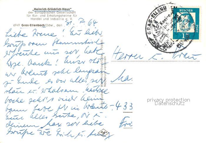 73310000 alte Postkarte Grasellenbach Heinrich Gluecklich Haus postalisch gelaufen Erhaltung siehe scans [FriedD77] KatCode: 11110006431009