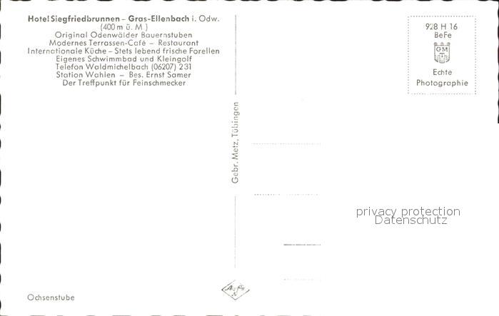 72094252 Grasellenbach Hotel Siegfriedbrunnen postalisch nicht gelaufen Erhaltung siehe scans KatCode: 11110006431009