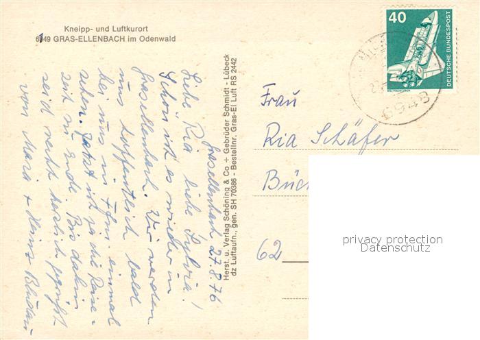 73267377 alte Postkarte Grasellenbach Kneippkurort Luftkurort im Odenwald Fliegeraufnahme postalisch gelaufen Erhaltung siehe scans [FriedD77] KatCode: 11110006431009