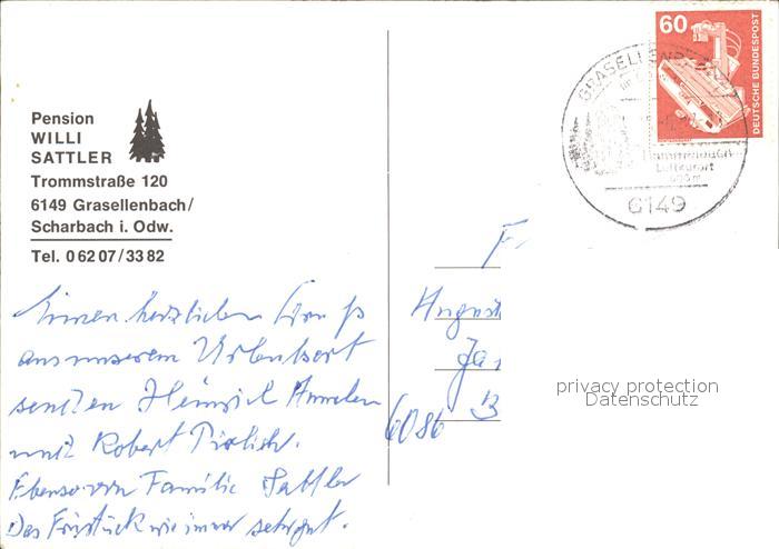 72042919 alte Postkarte Grasellenbach Pension Willi Sattler postalisch gelaufen Erhaltung siehe scans KatCode: 11110006431009