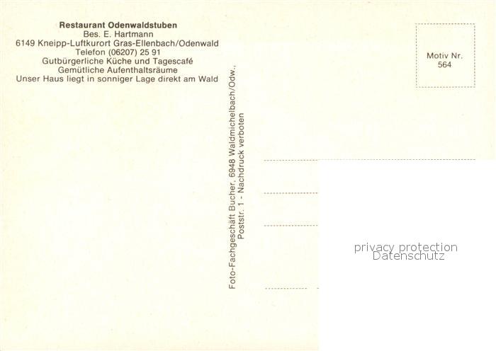 73568880 Grasellenbach Restaurant Odenwaldstuben Landschaftspanorama Odenwald postalisch nicht gelaufen Erhaltung siehe scans [FriedD77] KatCode: 11110006431009