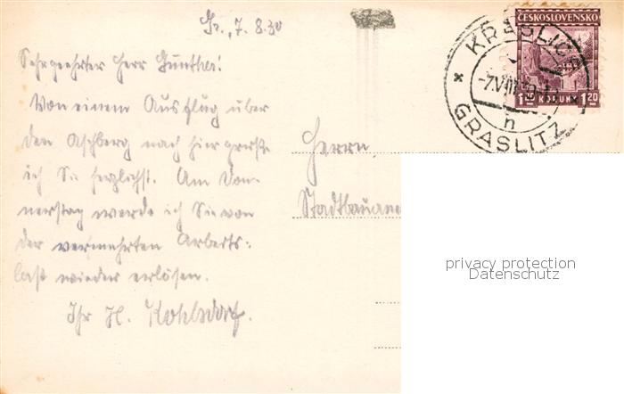 73850215 Graslitz Kraslice CZ Panorama postalisch gelaufen Erhaltung siehe scans [WerneD78] old postcard Wern Katcode 11520