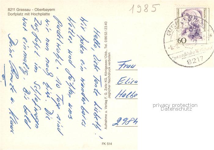 72925605 alte Postkarte Grassau Chiemgau Dorfplatz Hochplatte postalisch gelaufen Erhaltung siehe scans [NatalD47] KatCode: 11110009189120