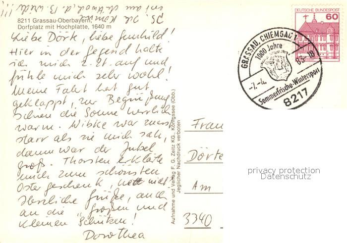 73126587 alte Postkarte Grassau Chiemgau Dorfplatz Maibaum mit Hochplatte Chiemgauer Alpen postalisch gelaufen Erhaltung siehe scans [FriedD77] KatCode: 11110009189120