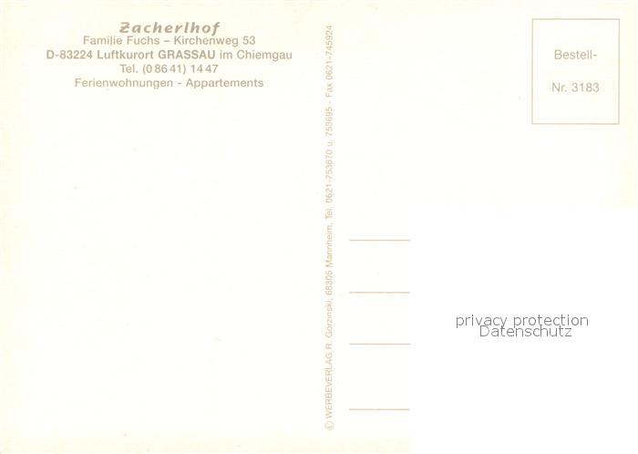 73723248 Grassau Chiemgau Zacherlhof Ferienwohnungen Appartements postalisch nicht gelaufen Erhaltung siehe scans [WerneD78] KatCode: 11110009189120