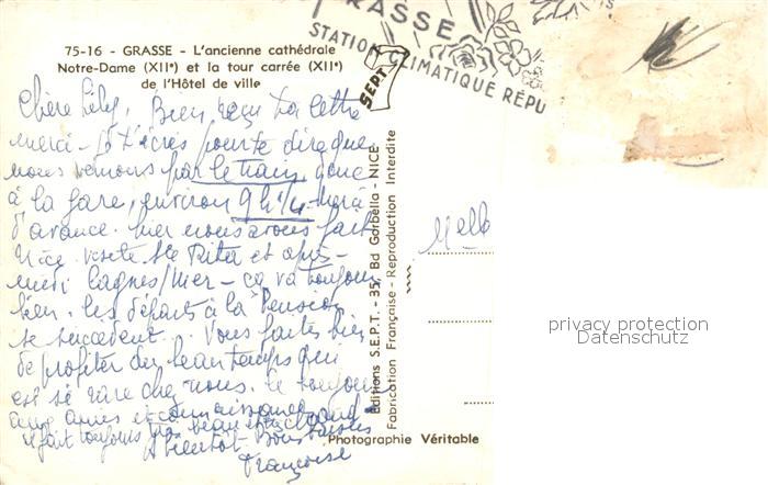13536385 carte postale Grasse Alpes Maritimes Cathedrale Notre Dame et Hotel de Ville postalisch gelaufen Erhaltung siehe scans [LiesaD40] KatCode: 11170006106069