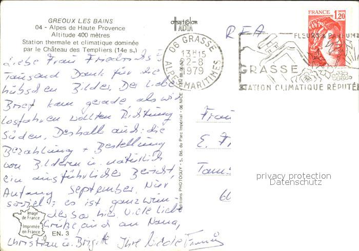 12433242 carte postale Grasse Alpes Maritimes Chateau des Templiers postalisch gelaufen Erhaltung siehe scans KatCode: 11170006106069