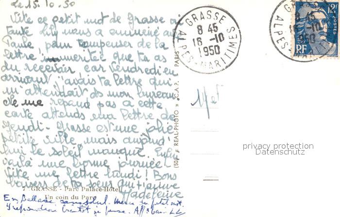 13536962 carte postale Grasse Alpes Maritimes Parc Palace Hotel Un coin du Parc postalisch gelaufen Erhaltung siehe scans [WerneD78] KatCode: 11170006106069