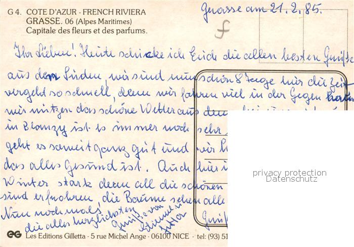 13062273 Grasse Alpes Maritimes Vues d ensemble Capitale des fleurs et des parfums postalisch nicht gelaufen Erhaltung siehe scans [FriedD77] KatCode: 11170006106069