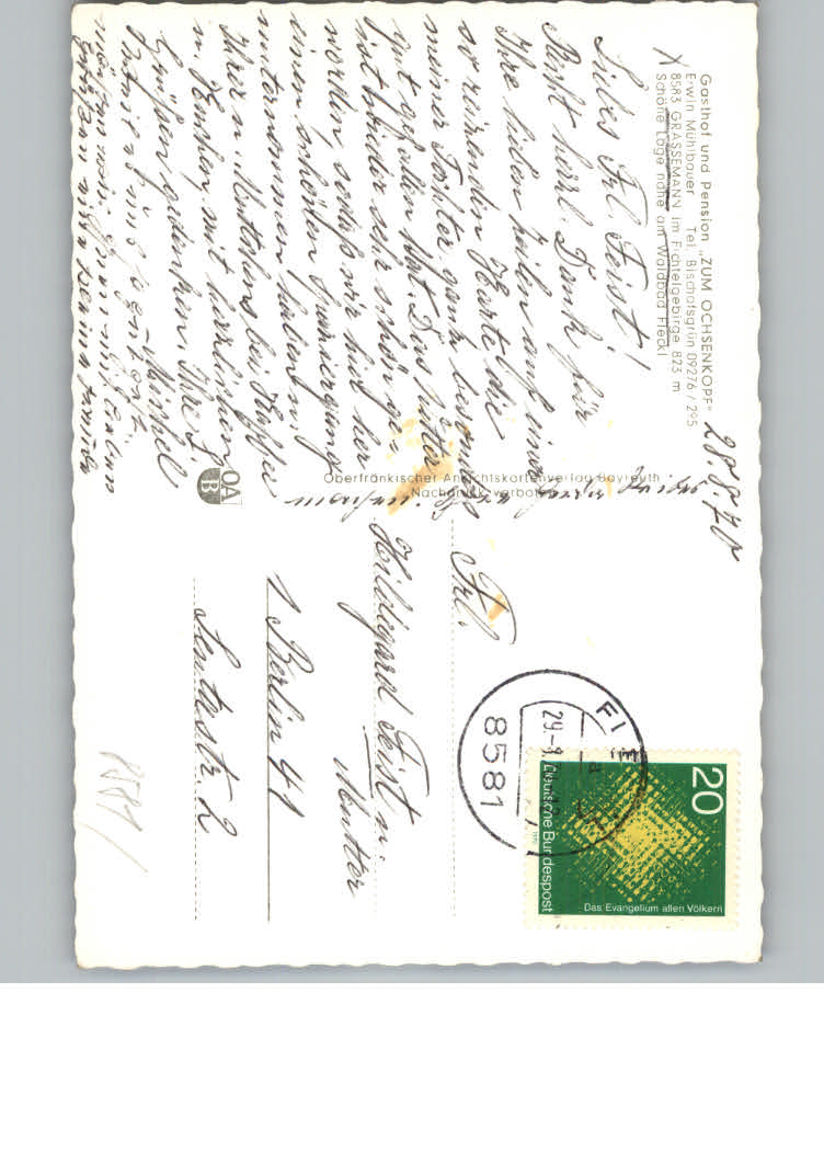 31170717 Grassemann Gasthof Pension Zum Ochsenkopf postalisch nicht gelaufen KatCode: 11110009472198