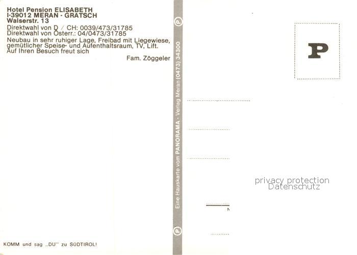Gratsch Meran Hotel Pension Elisabeth postalisch nicht gelaufen Erhaltung siehe scans [KathaD81]